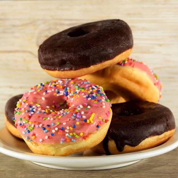 Mix de donas bañadas con chocolate blanco y choco negro, rellenas con dulce de leche